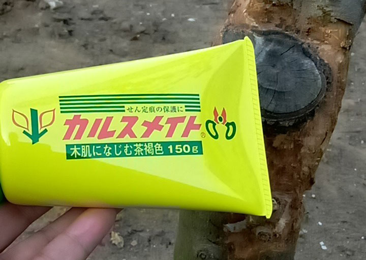 木くずを取り除いてから、樹木の切り口の保護として塗ります。