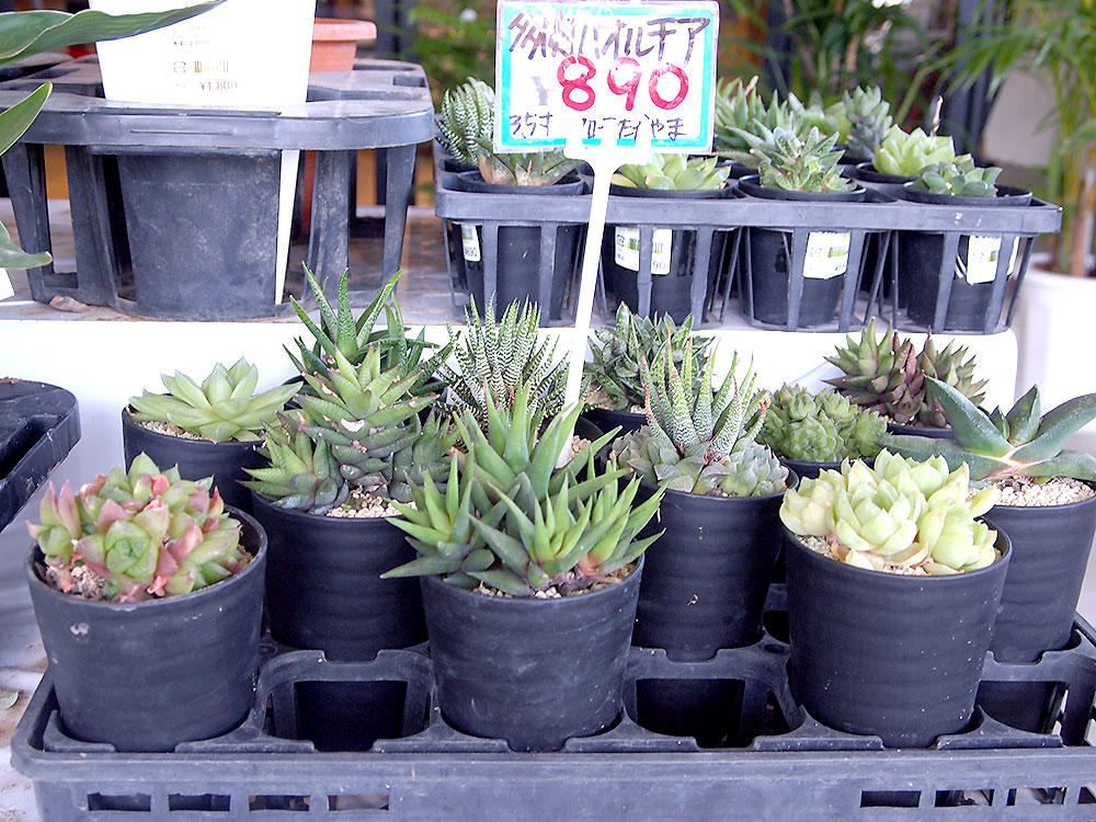 おうちのコーナーや玄関にちょこっと飾りたくなるような、小さな多肉植物やサボテンもこちらのコーナーに並び始めました。
