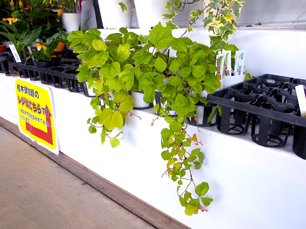 - 観葉植物コーナーで購入した「ブドウ科ナツヅタ フェンウェイパーク」です。耐寒性、耐暑性に優れ、やや半日陰向きです。600円(税込)でした。