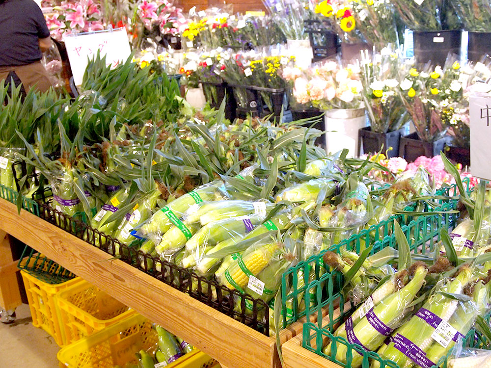 道の駅 みのりの郷 東金 東金マルシェでは、本日も地元産のトウモロコシがてんこ盛り!ですよ。