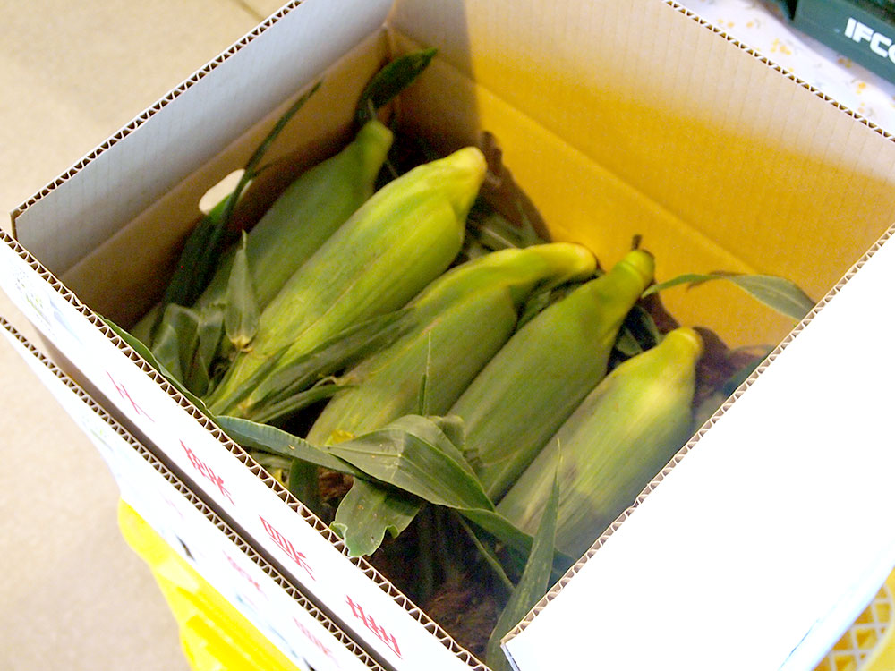 定番人気の品種「ゴールドラッシュ」や糖度が高い!あまい!と評判の白いトウモロコシ、ベビーコーンも本日たくさん並んでおります!