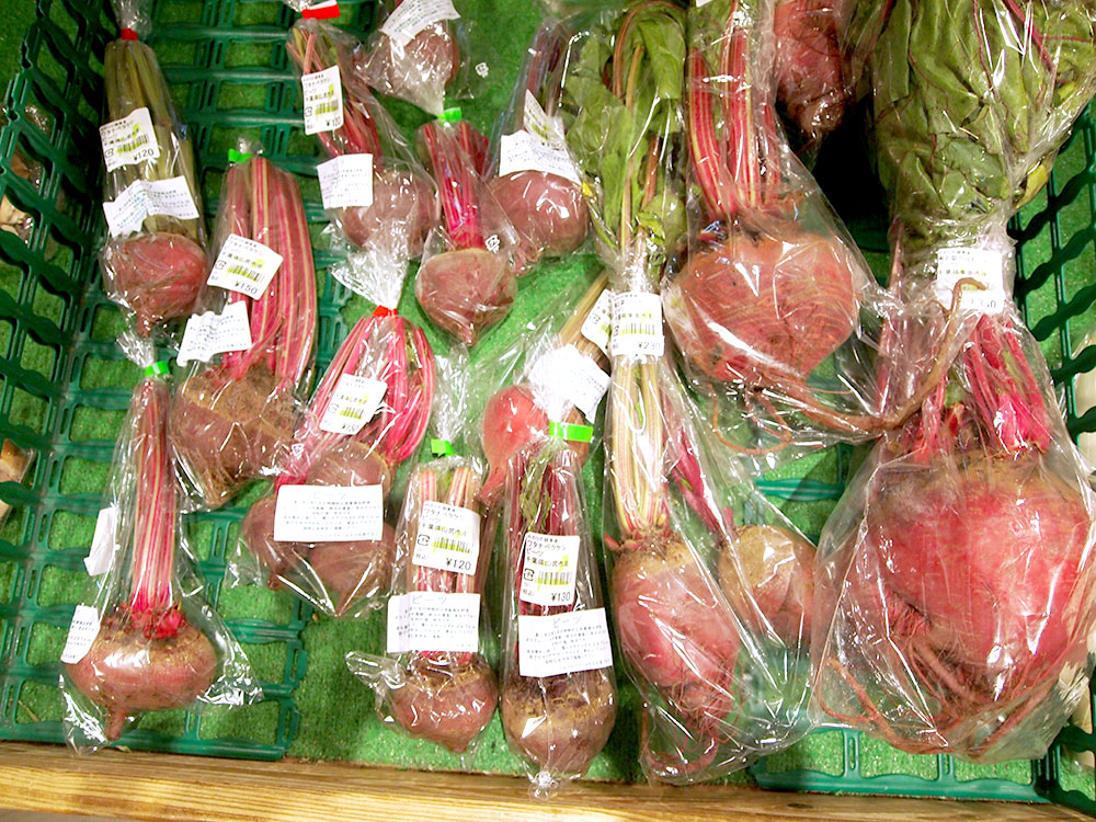 そして、いまビーツがいつもの3倍ぐらいのボリュームになっております。大きさが手のひらより小さいものから顔より大きくてびっくり!なものまで並びました。