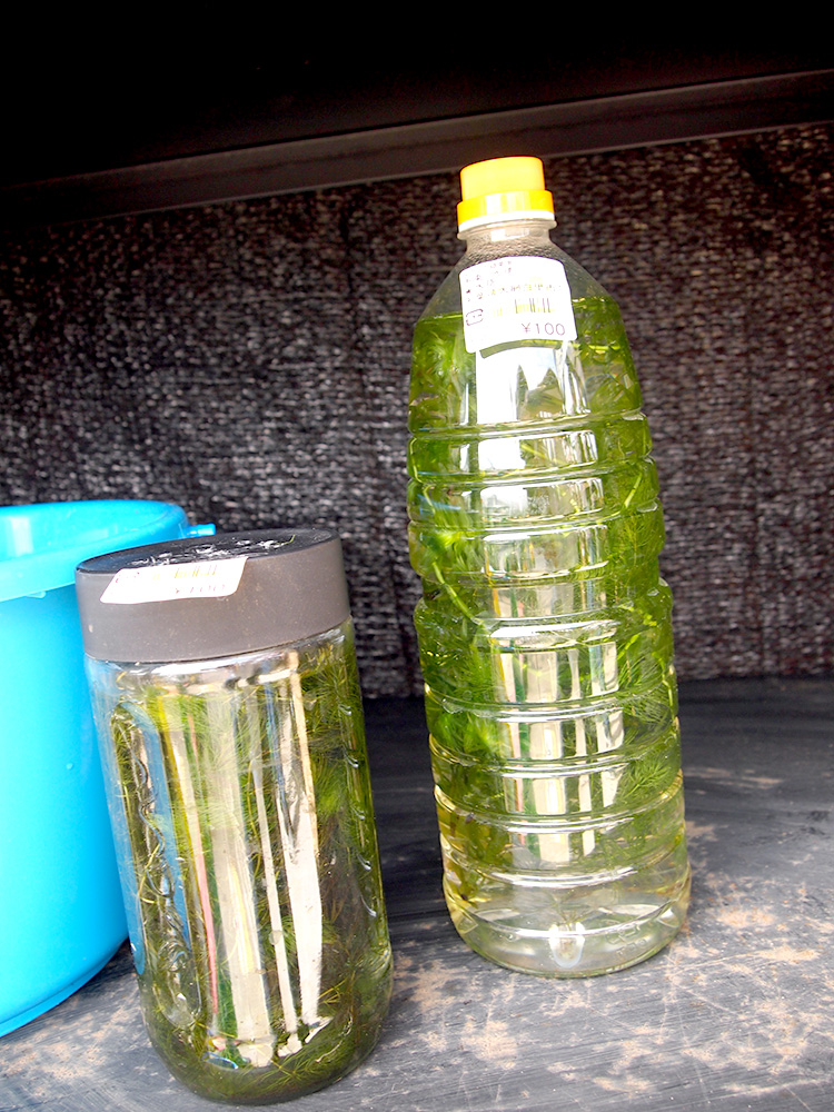 めだかのほかにも、栄養剤や水草なども並んでいます。