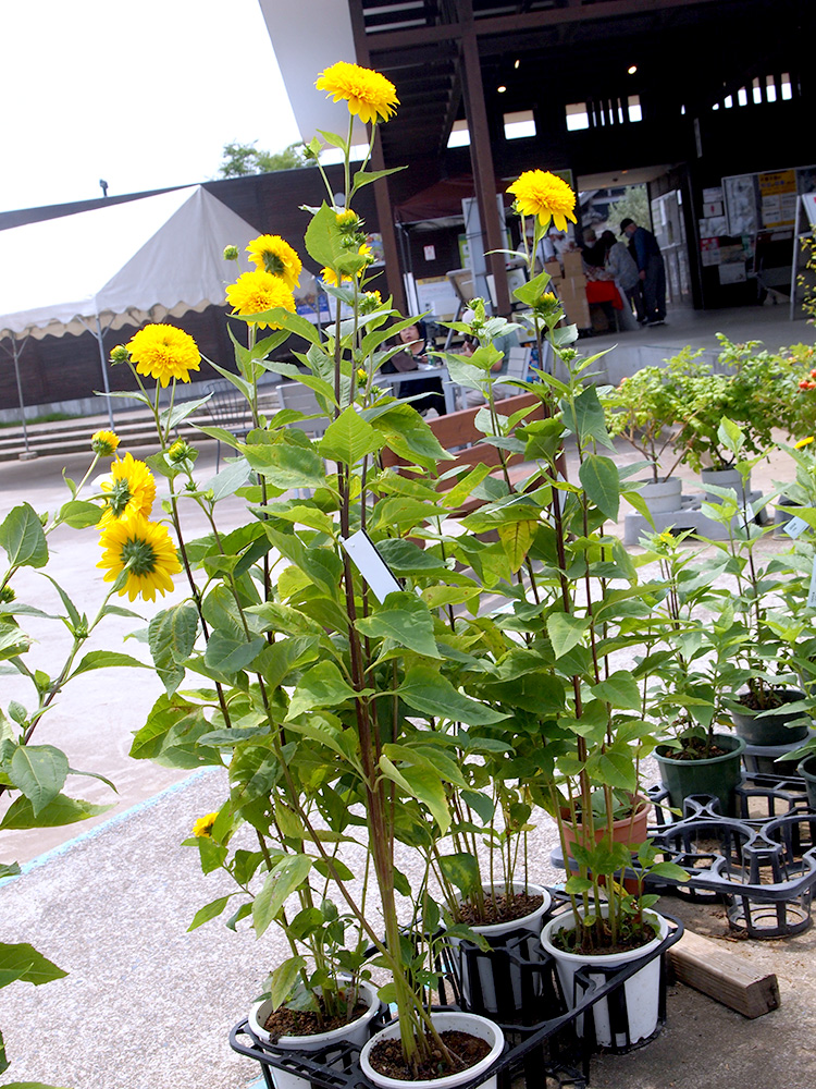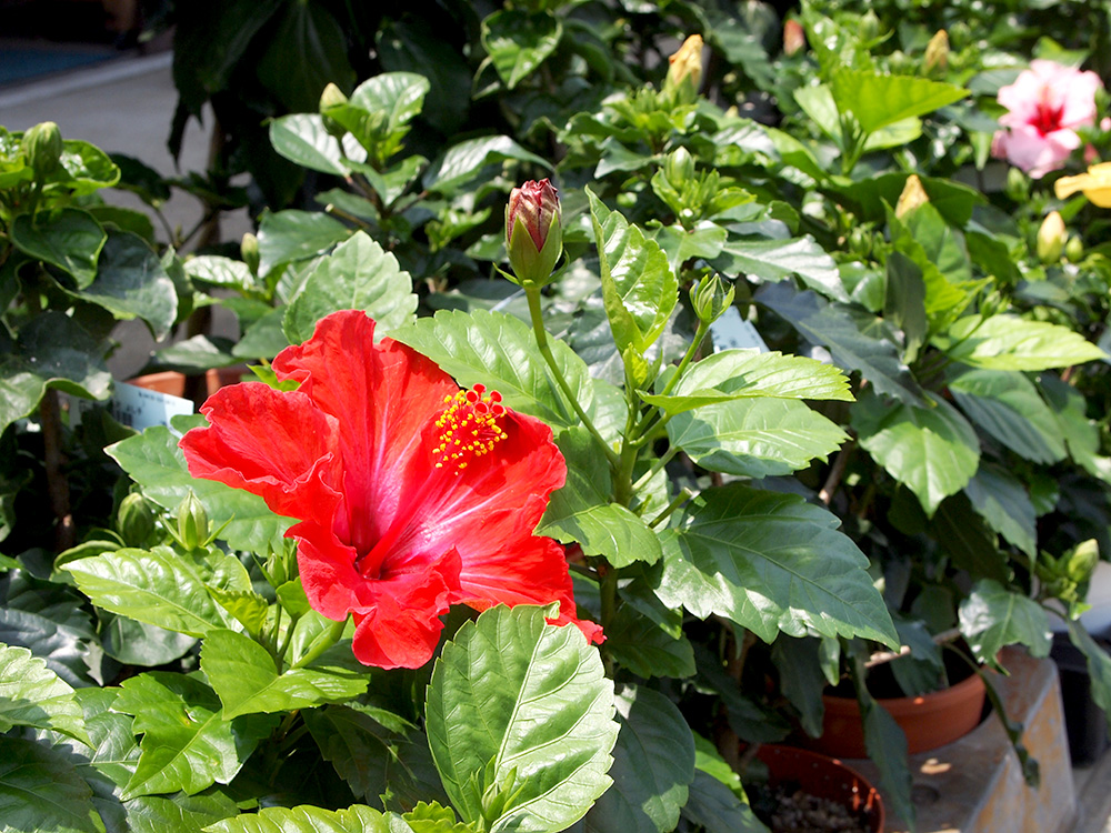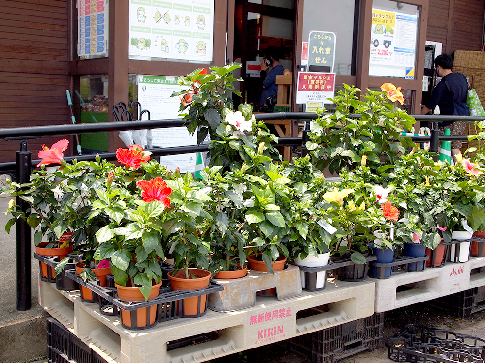 ひまわり苗やハイビスカスが太陽の日差しに負けない勢いです!