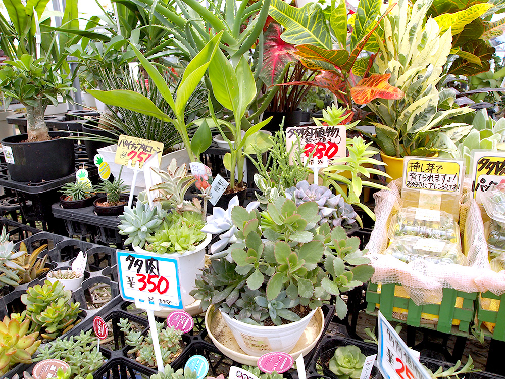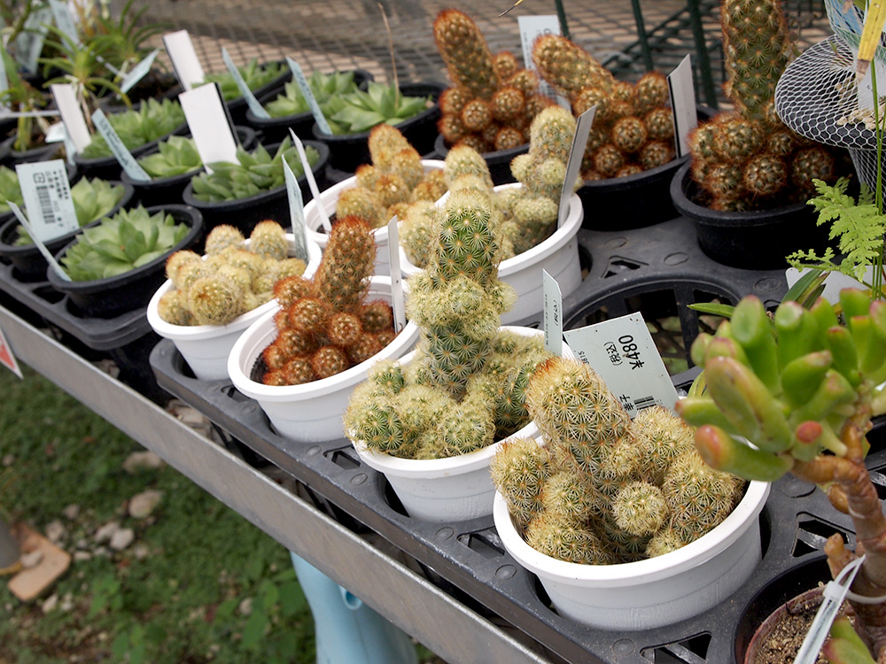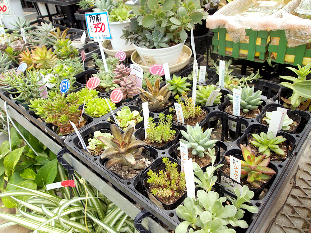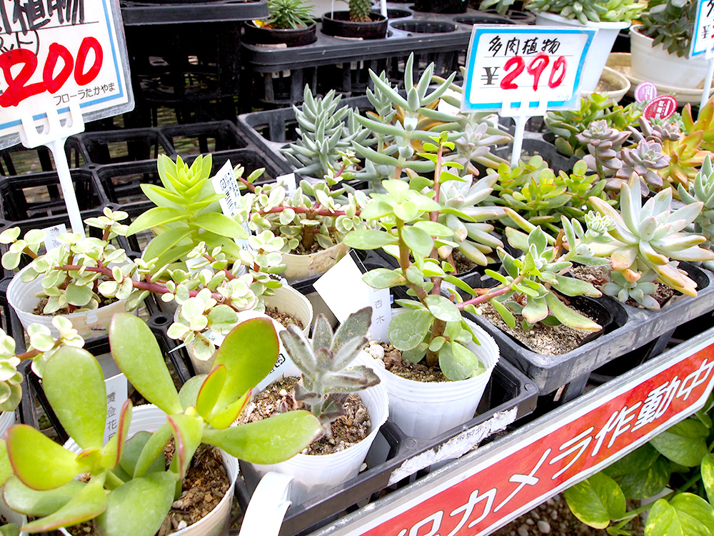 手ごろなお値段で、品種も本当に多い多肉植物がずらっと並んでいます。