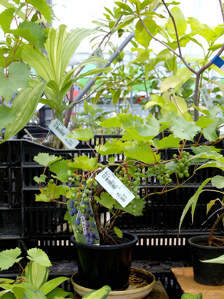 その他、小さなお手頃価格のサボテンや、三日月ネックレス、山ブドウの苗木も観葉植物としてお部屋の日当たりの良いところにおいても涼し気ですね。