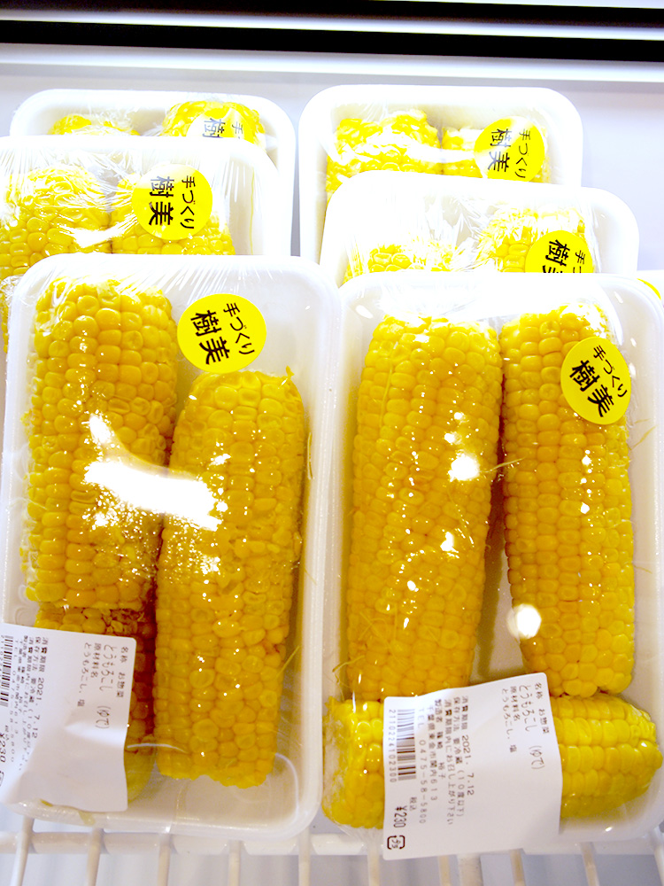 今が旬のトウモロコシを美味しく茹でたお惣菜が冷蔵庫コーナーにありました!