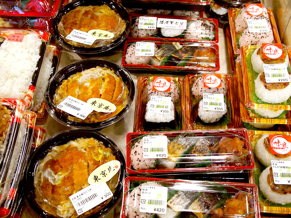 求名駅前の味良さんの「海老天むす」や「焼鯖寿司」、東京庵さんのお蕎麦屋さんの本格「かつ丼」、