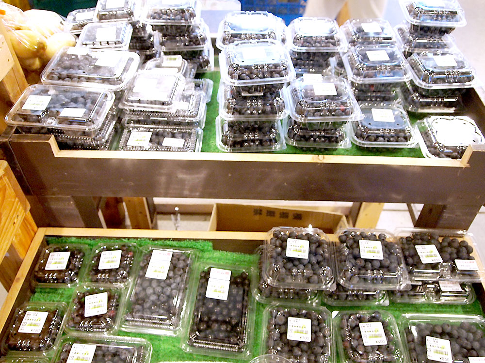 地元産ブルーベリーも本日たくさん並んでいますよ!ジャム用のお買い得パックは早い者勝ち!です。