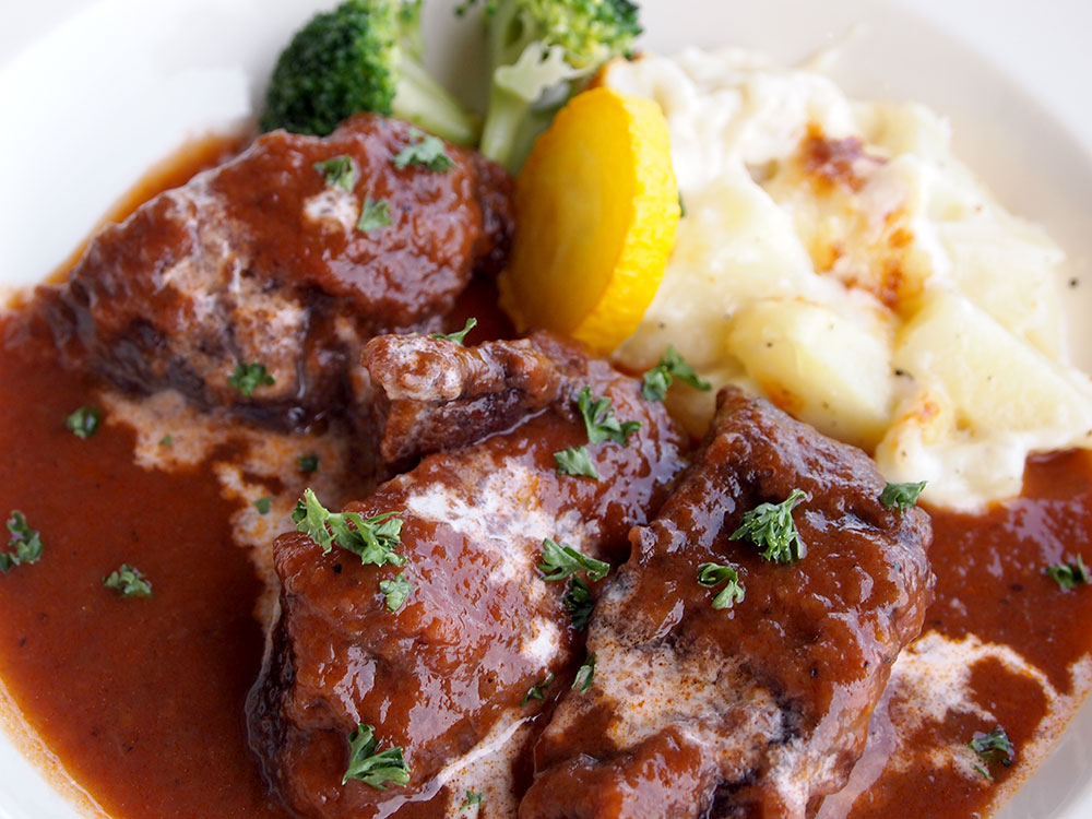 ホロホロに柔らかく煮込んだ牛ほほ肉を特製ソースで仕立てました。