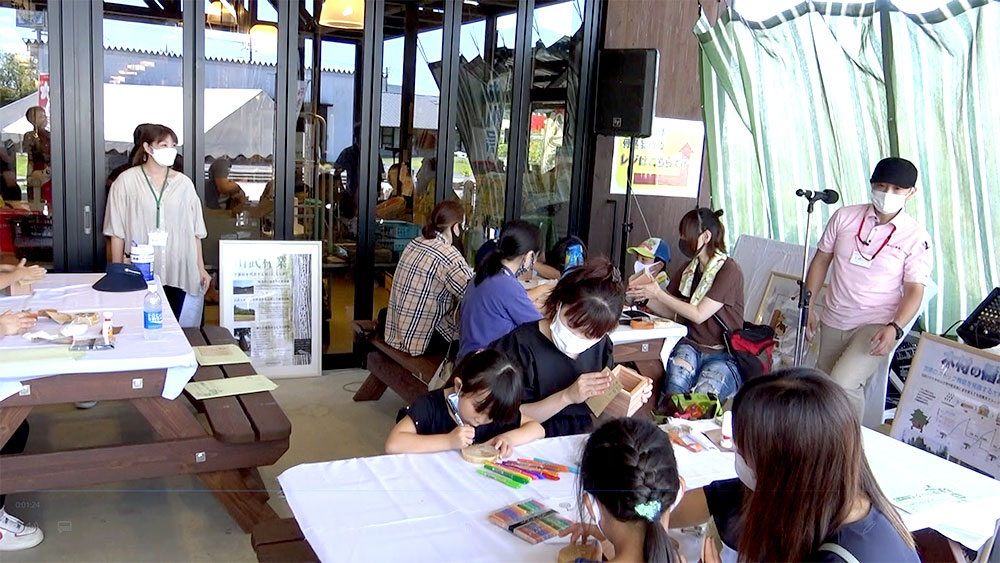 サンブスギの歴史のお話や、様々なところで活用されているサンブスキのお話、サンブスギを使用することで地球にやさしいなどのお話をしていただいた後、