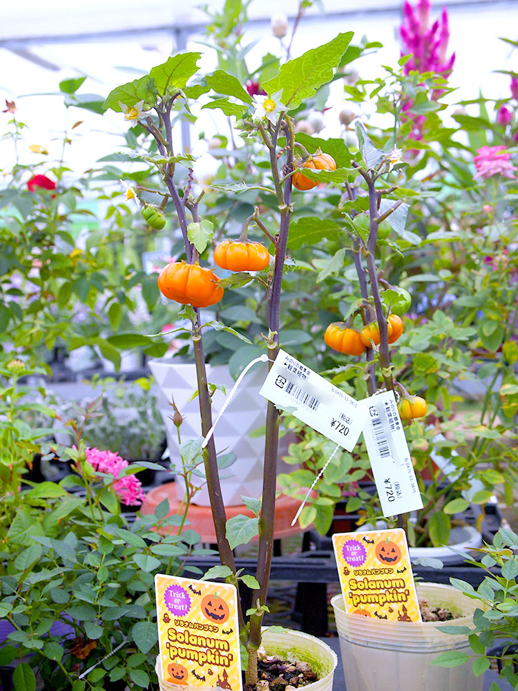苗木に小さなかぼちゃの実がついているようなソラナム パンプキン(カボチャのような実の花ナス)面白いです!