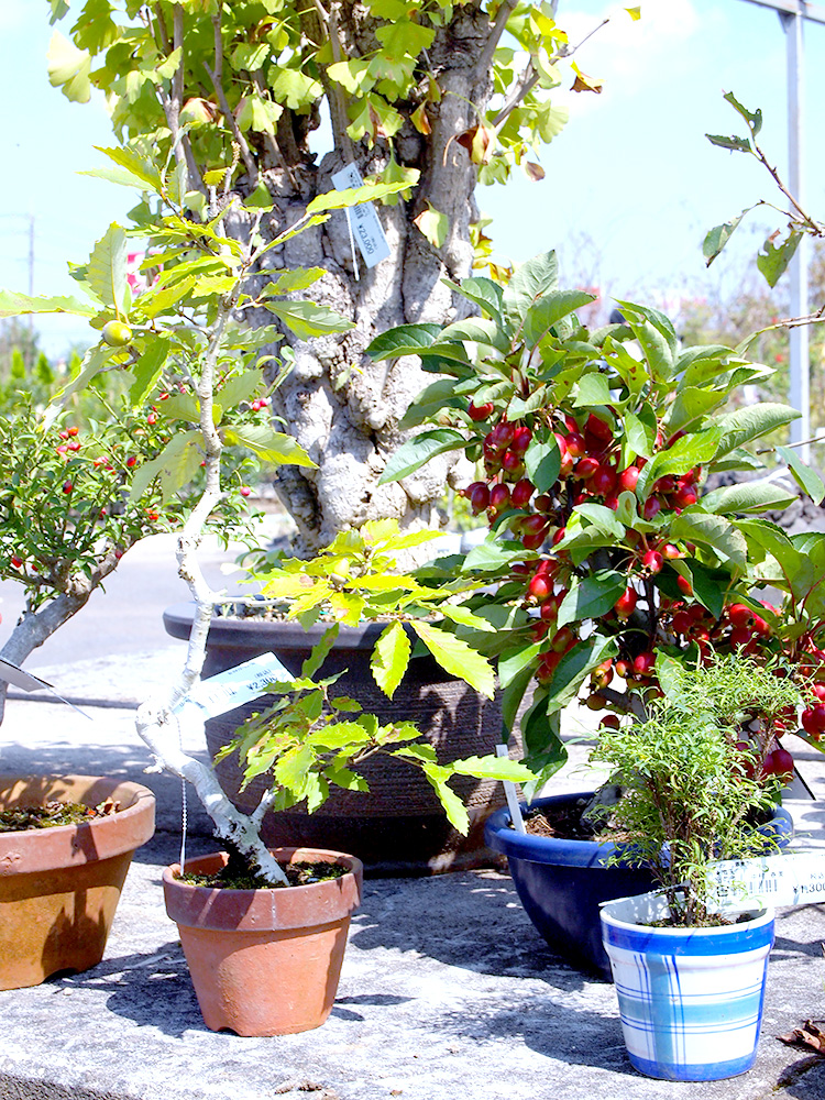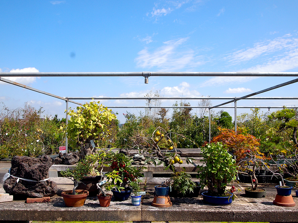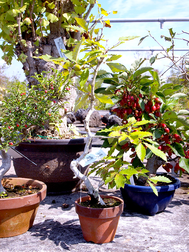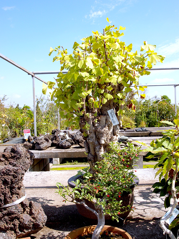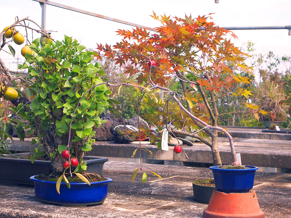 道の駅 みのりの郷 東金 緑花木市場では、秋の盆栽がズラリと揃いました。