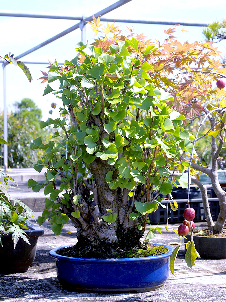 神々しくも感じるイチョウの盆栽、姫ビコウ(姫美好)は赤い実が秋らしくて風流さを感じます。