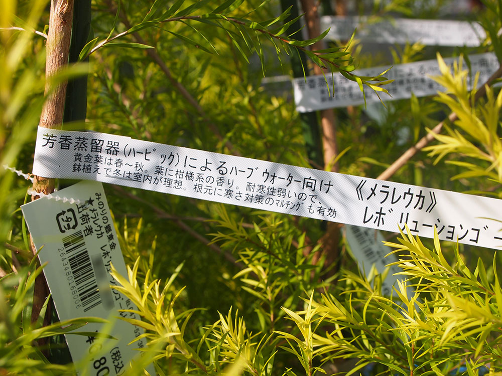 今回並んだのは「メラレウカ レボリューションゴールド」「メラレウカ ブラックティーツリー」「レプトスペルマム レモンティーツリー」です。