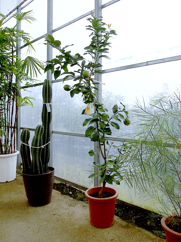 室内の日が燦燦と当たる場所に置いてみたい、レモンの苗木や1mほどの高さのボリュームのあるウチワサボテンが存在感があってよいですね。