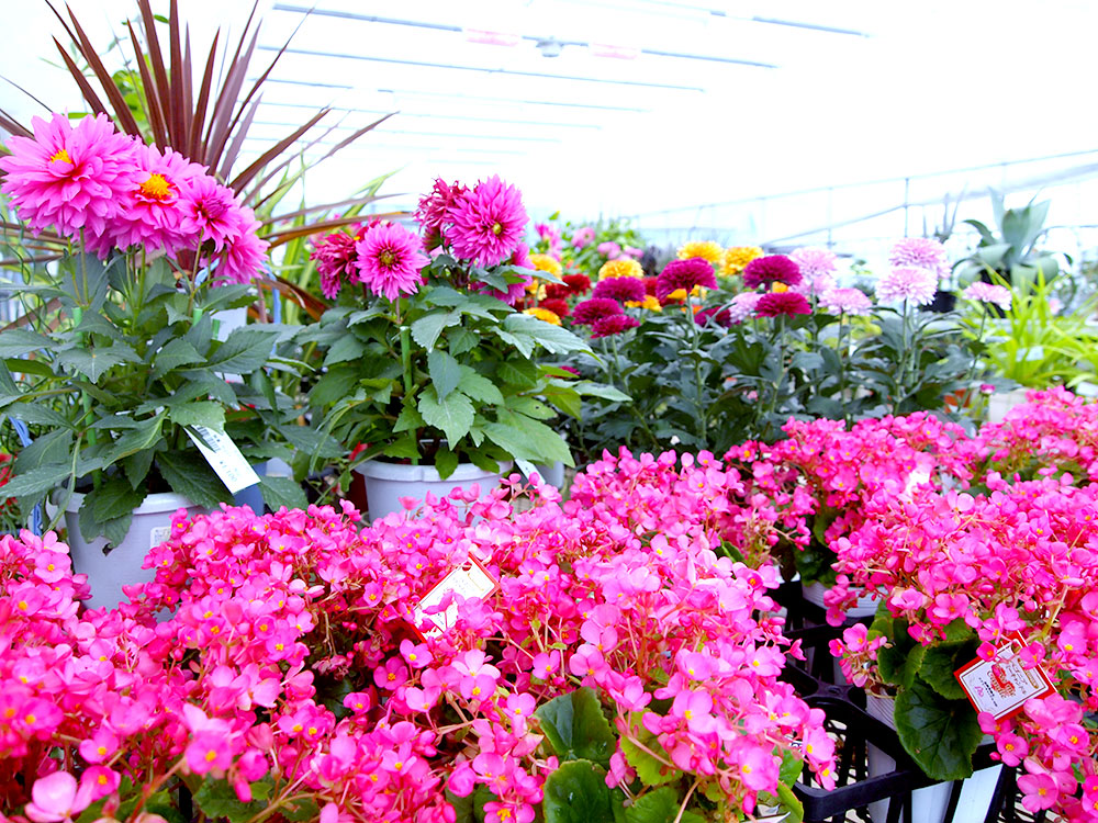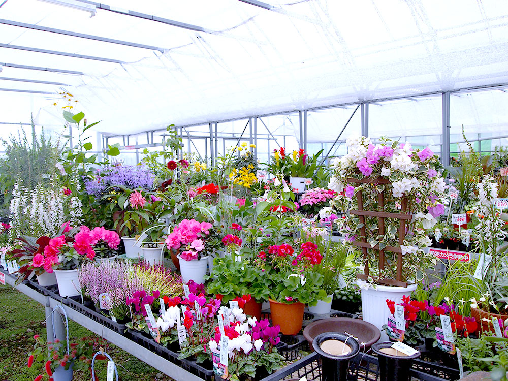道の駅 みのりの郷 東金 緑花木市場のパイプハウスは、雨の日でもゆったりのんびりと植物をご覧いただけます。