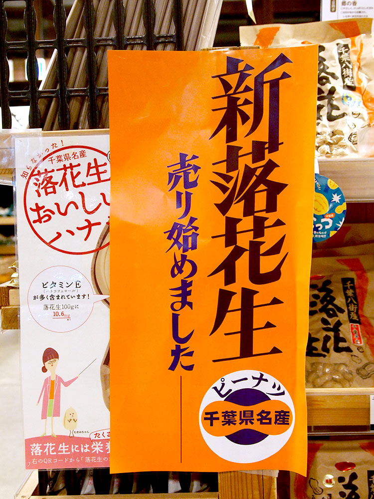 人気の千葉県新品種落花生「Qなっつ」のほか、千葉半立にも「新豆」シールがきらりと輝いていますよ!