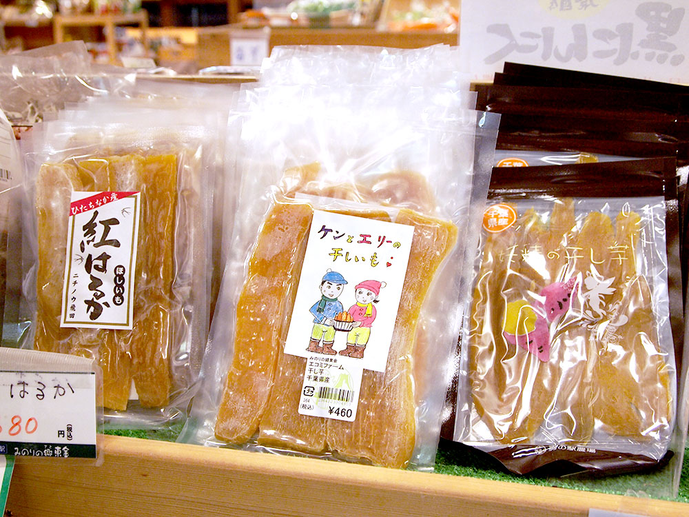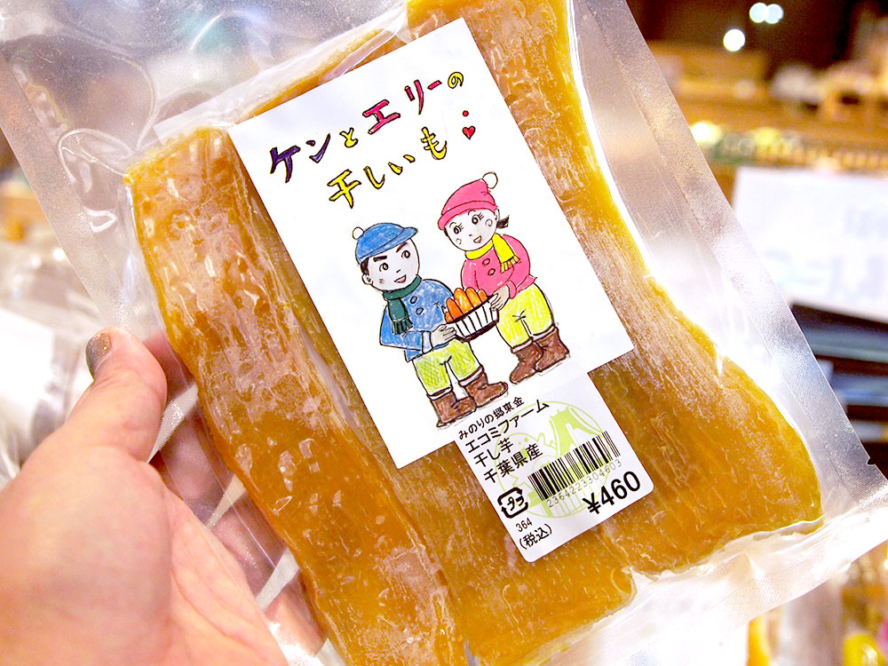 心和むパッケージのイラストが良い感じの「ケンとエリーの干しいも」は、東金市内のエコミファームさんの商品です。