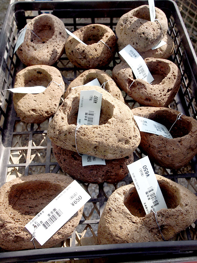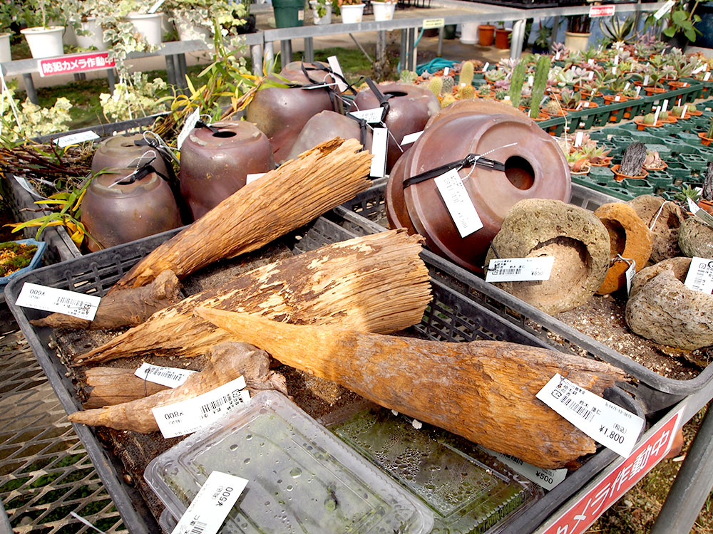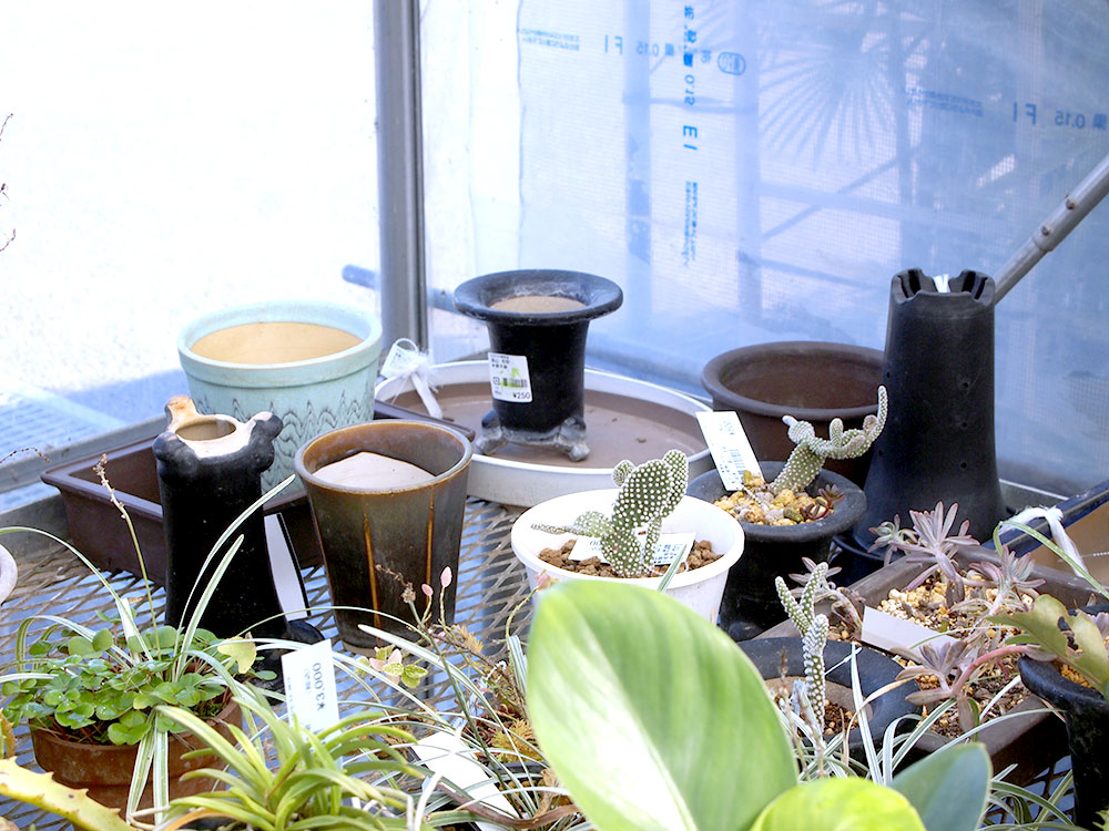 道の駅 みのりの郷 東金 緑花木市場のパイプハウスの中では、お部屋のアクセントにピッタリな「ミニ盆栽」用の資材が所々に登場しています。