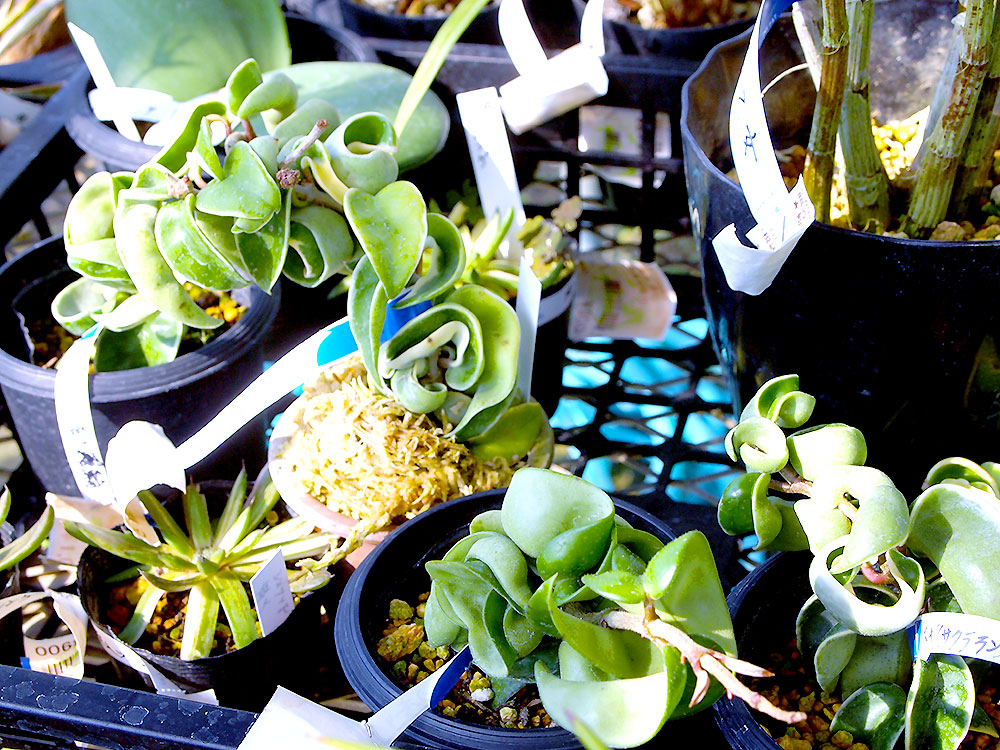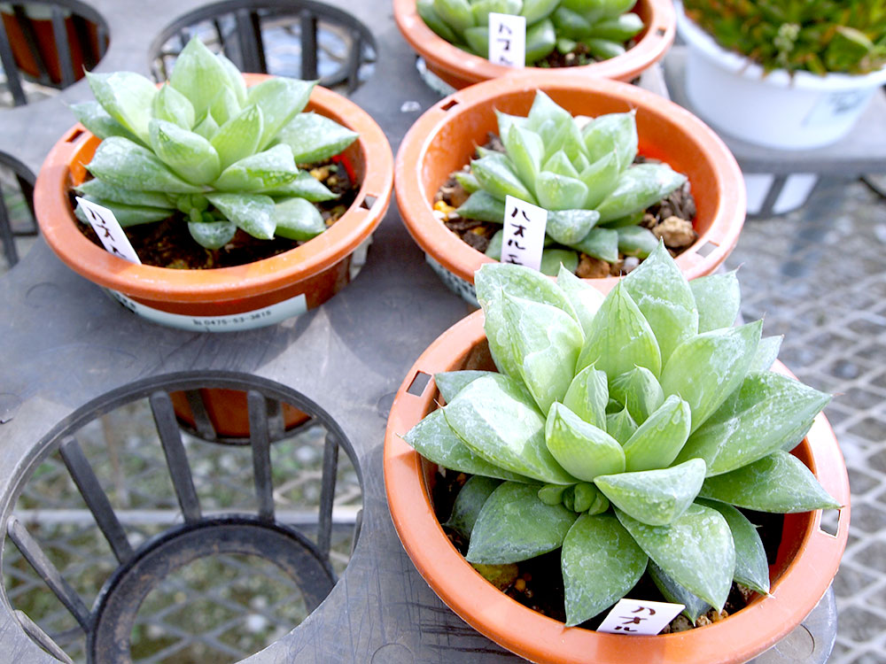 くねくねした葉が面白いホヤの苔玉、直径10cmくらいありそうなハオルチア オブツーサを発見!