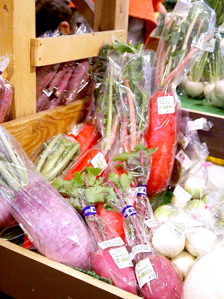 聖護院大根や、鮮やかな色の赤い大根、菊芋やブランド品種のプチトマト、鬼ゆず(獅子ゆず)などもございます。