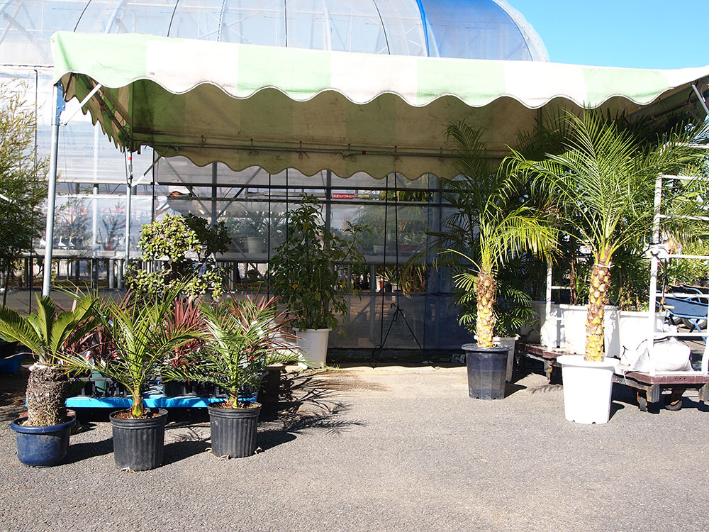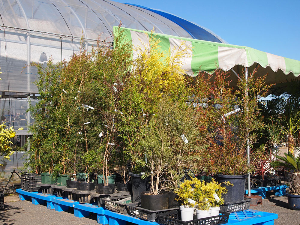 そのほか、人気のティーツリーの苗木、ドライガーデンづくりにピッタリなヤシの木やソテツ、高麗芝やパンジーの苗もたくさんございますので、どうぞご利用くださいませ。