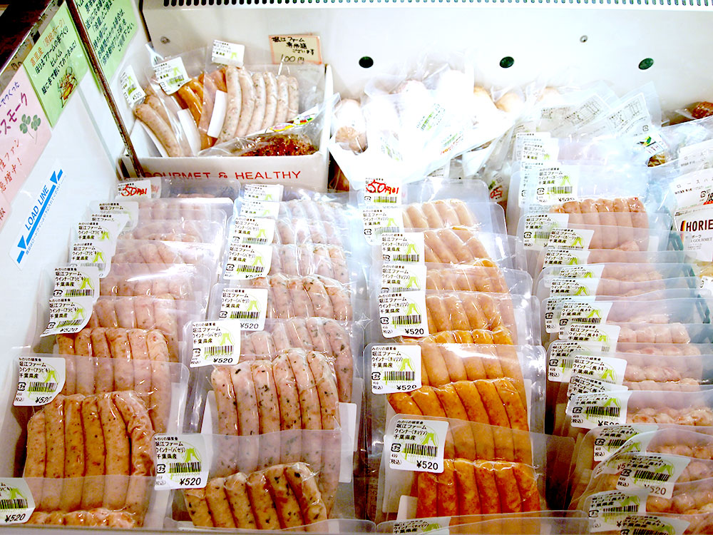 「幻の豚肉」といわれる堀江ファームさんのソーセージやハムもたくさん並んでいます。
