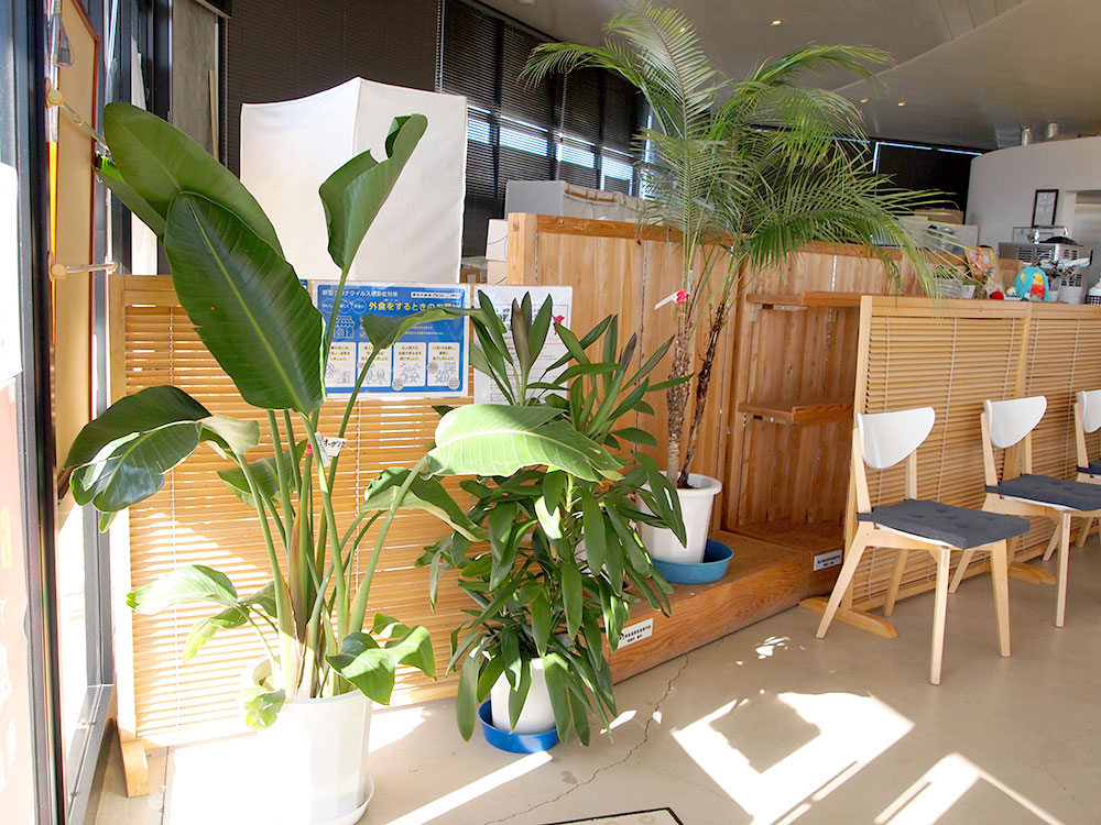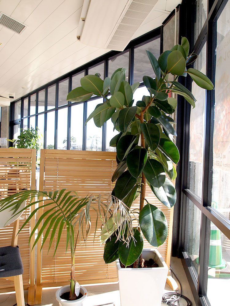 ちなみにカフェ&リストランテとっチーノの店内は『植木のまち東金』らしく、観葉植物がたくさん飾られた癒しの空間になっております。こちらの観葉植物はすべて緑花木市場でご購入いただけます。
