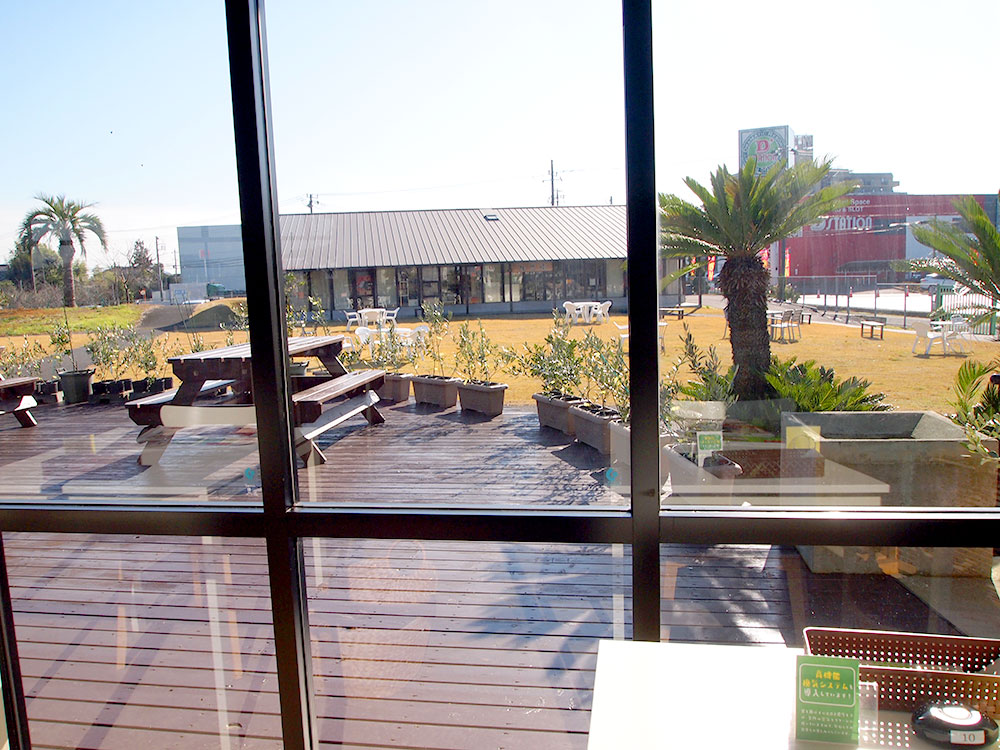 現在、道の駅の中にあるカフェ&リストランテとっチーノのテラス席の周りにも、たくさんのオリーブの木が並んでいます。