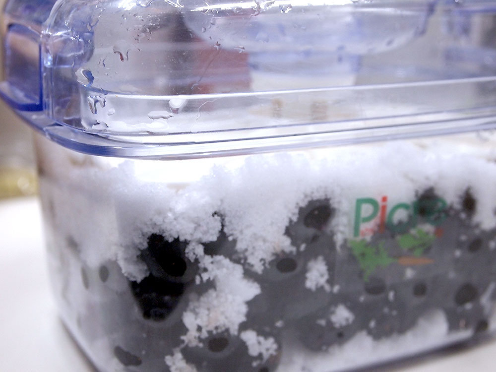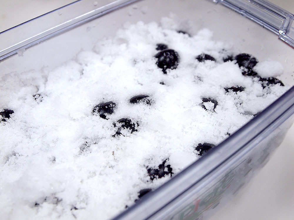 こちらの果実をよく水洗いをして、爪楊枝で2か所ずつ刺して渋みが抜けやすくなるようにし、ドバっと塩をかけて浅漬け容器に数日置きます。