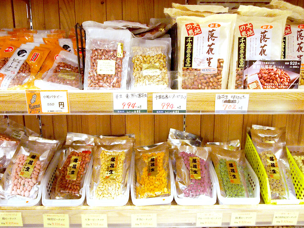 千葉県自慢の新品種落花生「Qなっつ」や、王道落花生「千葉半立」新豆、真空パウチの茹で落花生や味付きピーナッツ各種などバリエーションも様々ございますよ。