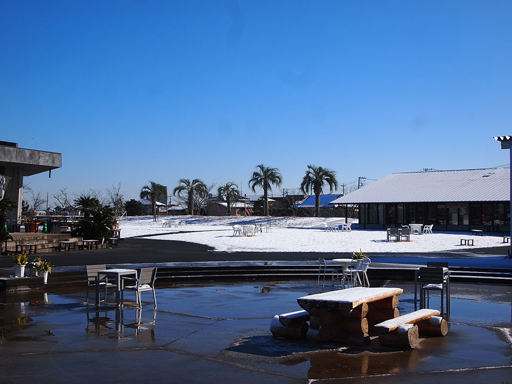 関東地方に大雪が降り、一夜が明けた本日の道の駅 みのりの郷 東金の様子です。