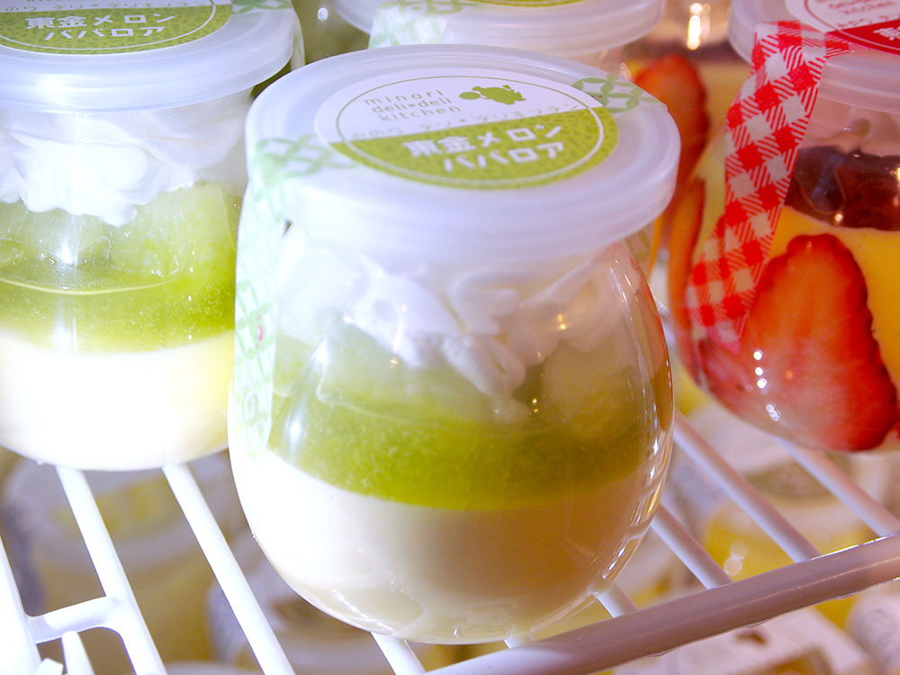 道の駅 みのりの郷 東金 東金市六次産業化拠点施設(加工場)みのりdeli*deliキッチンでは、先日ご紹介をさせていただいた旬のいちごを使ったババロアとともに、東金産の千葉アクアメロンを使った東金メロンババロアも数量限定販売中です!