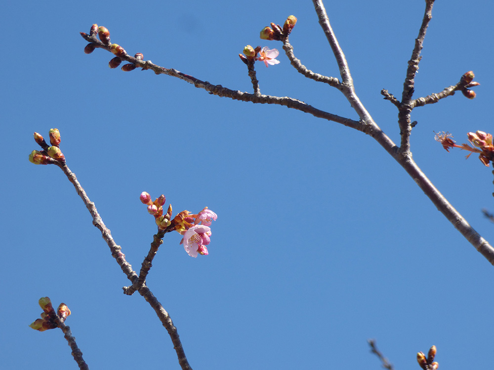 ソメイヨシノより1か月ほど早く満開のピンク色を楽しむことができます。