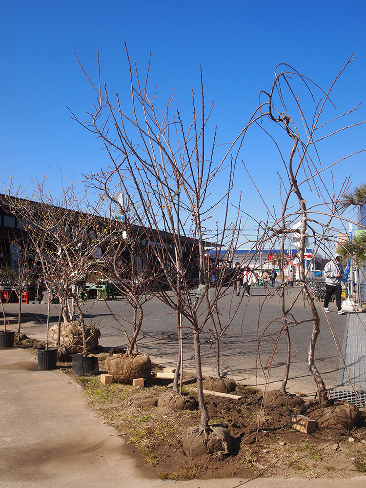 道の駅 みのりの郷 東金 緑花木市場は、2月に入ってから売り場のあちこちで春を待つ樹木が並び始めています。