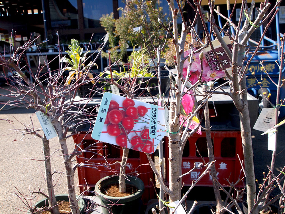 売り場にはほかにも、これから大きく花開く椿の苗木や、これからお庭に植えるのにぴったりな「サクランボ」の苗木が届いています。