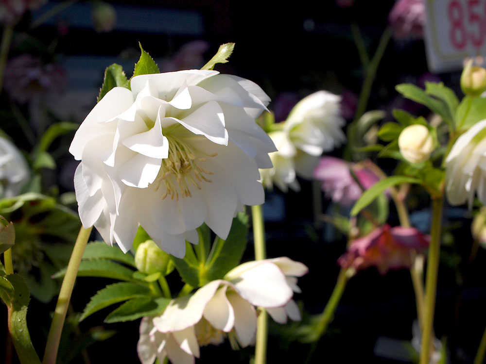 さて、緑花木市場のレジ横特設コーナーには、クリスマスローズの花苗がズラリとたくさん並びました!