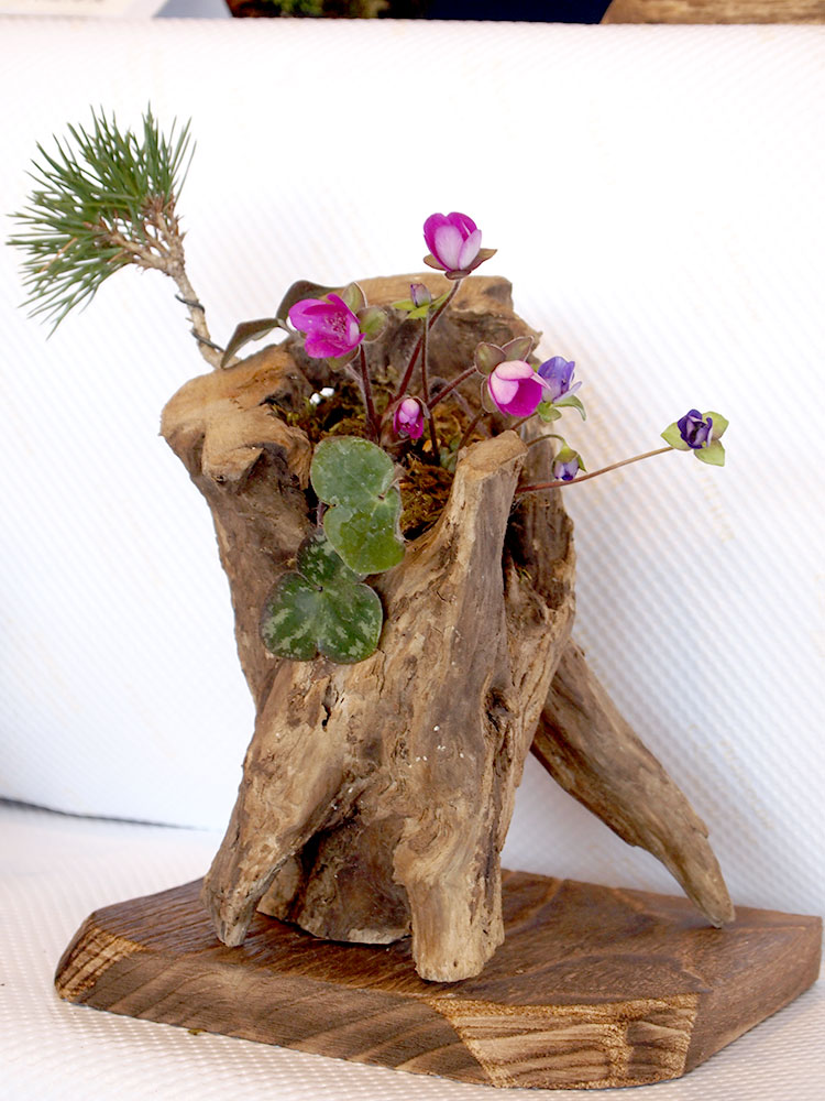 また、雪割草の盆栽仕立ての作品の展示も行われています。