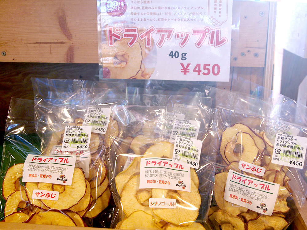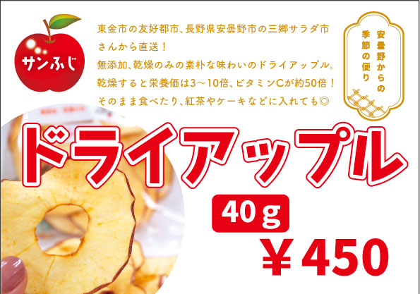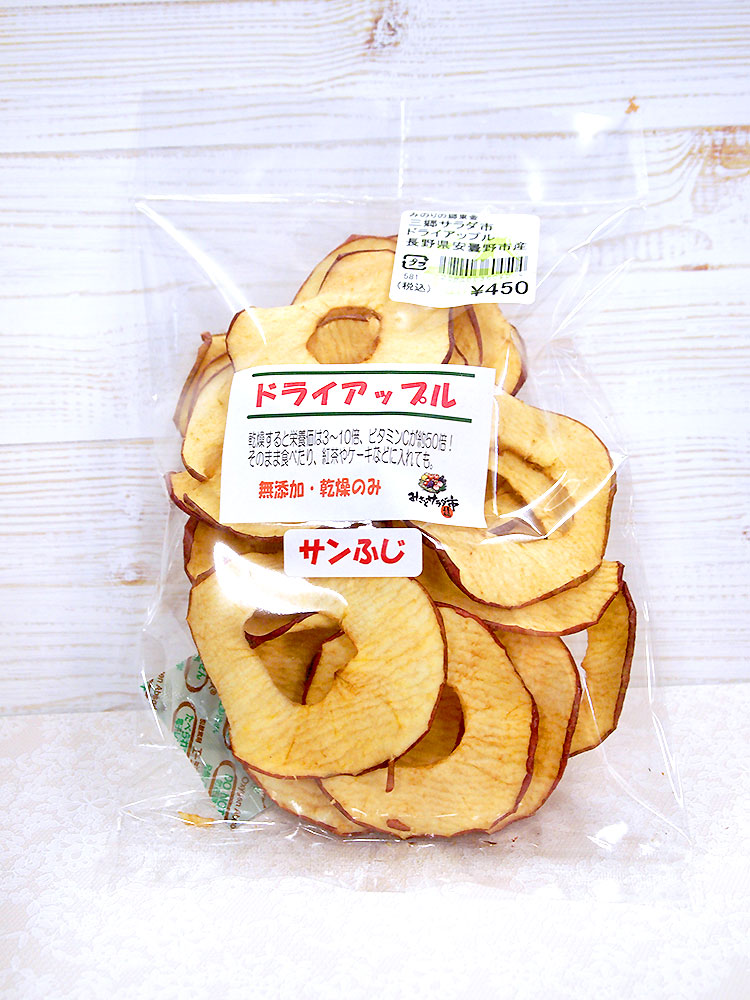 安曇野りんご「サンふじ」のドライアップル 40g 450円(税込)