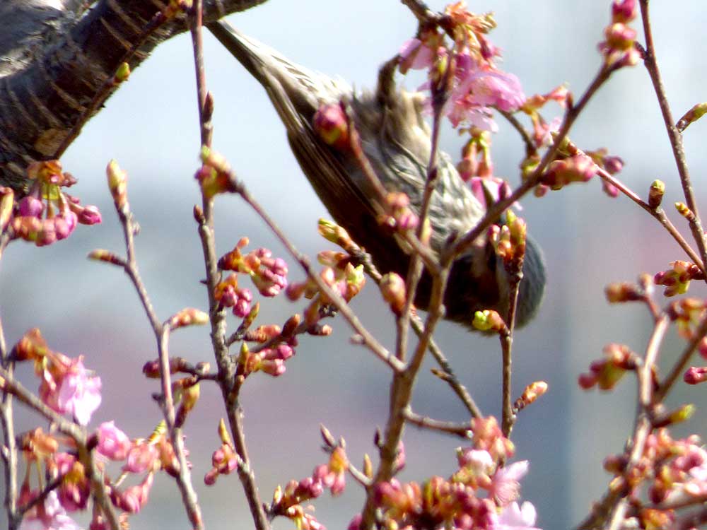 サクラの蜜をついばむ野鳥がいました。