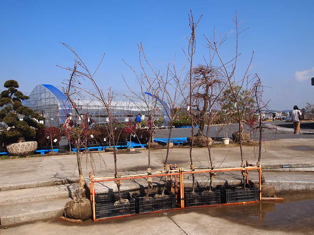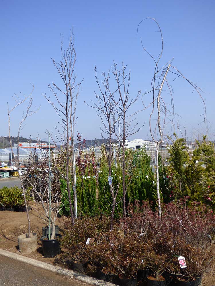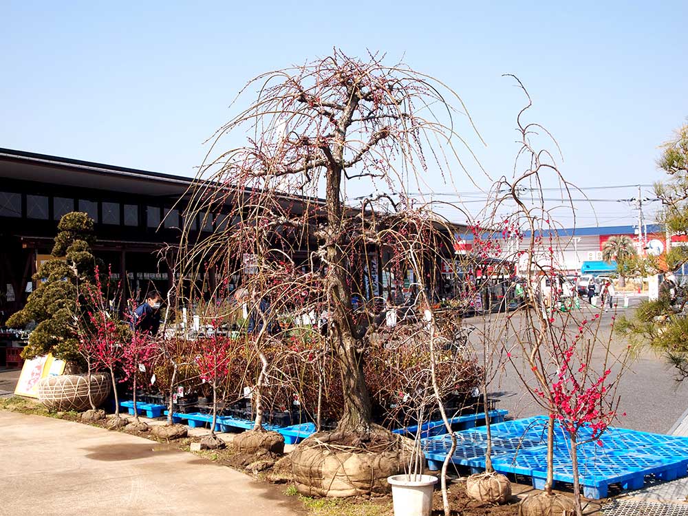 そのほか、お庭用の大苗のしだれ梅、桜も緑花木市場のあちこちにございますよ!