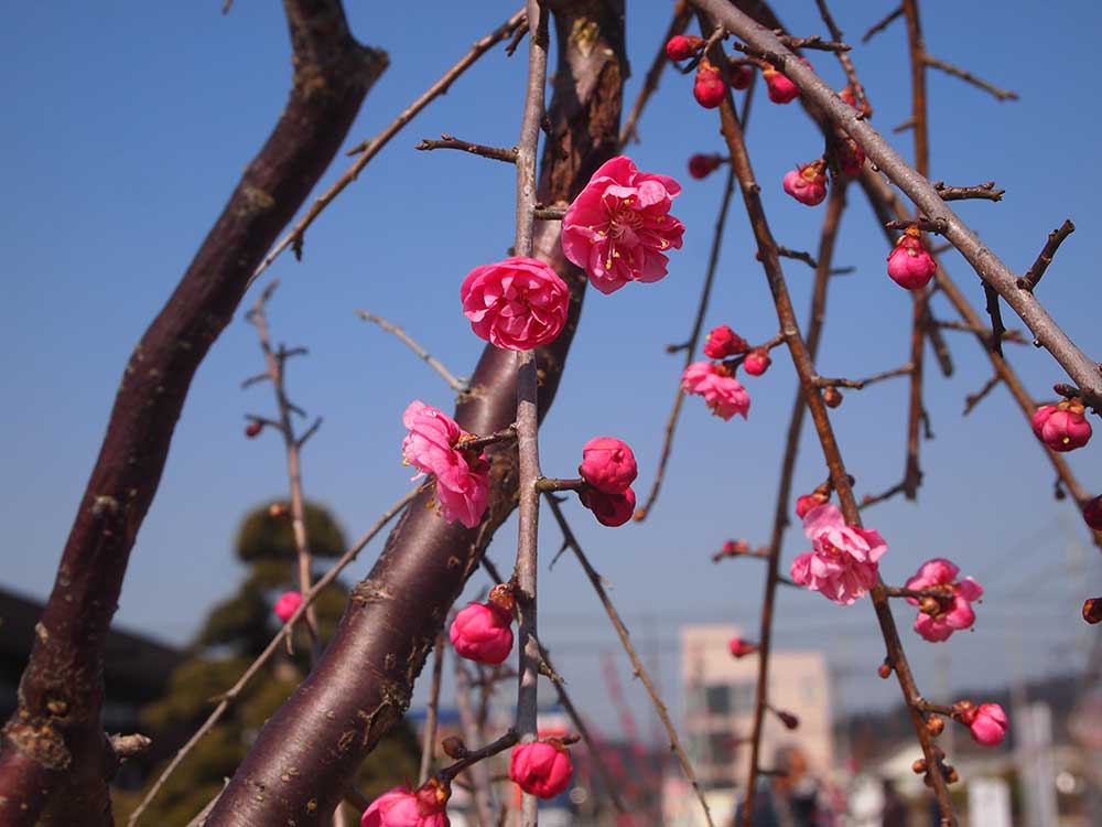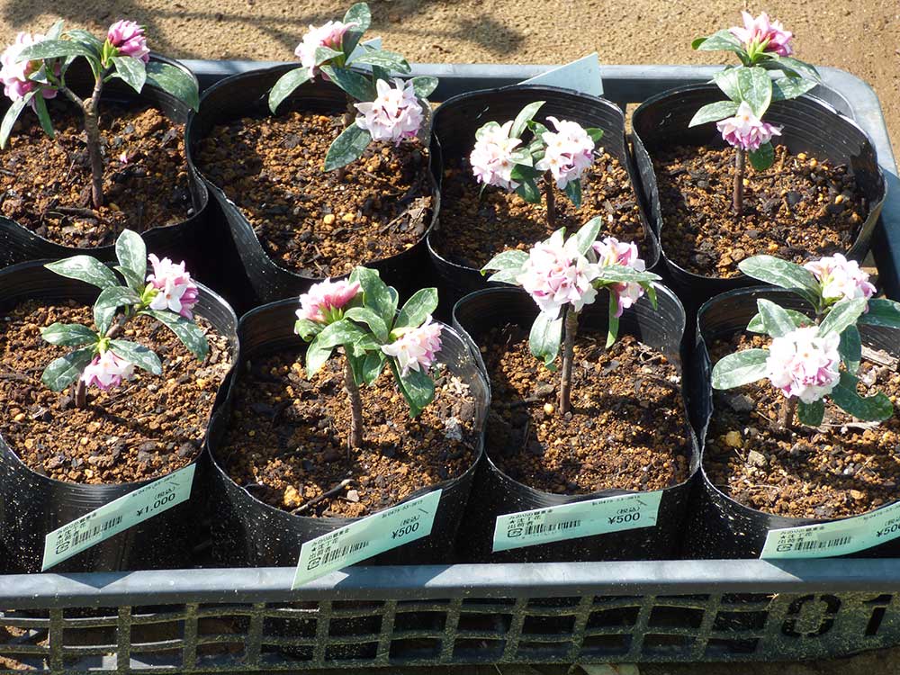 さて、緑花木市場には、満開になった梅盆栽や、これからじっくりと愛でることができる桜盆栽がズラリと並びました。