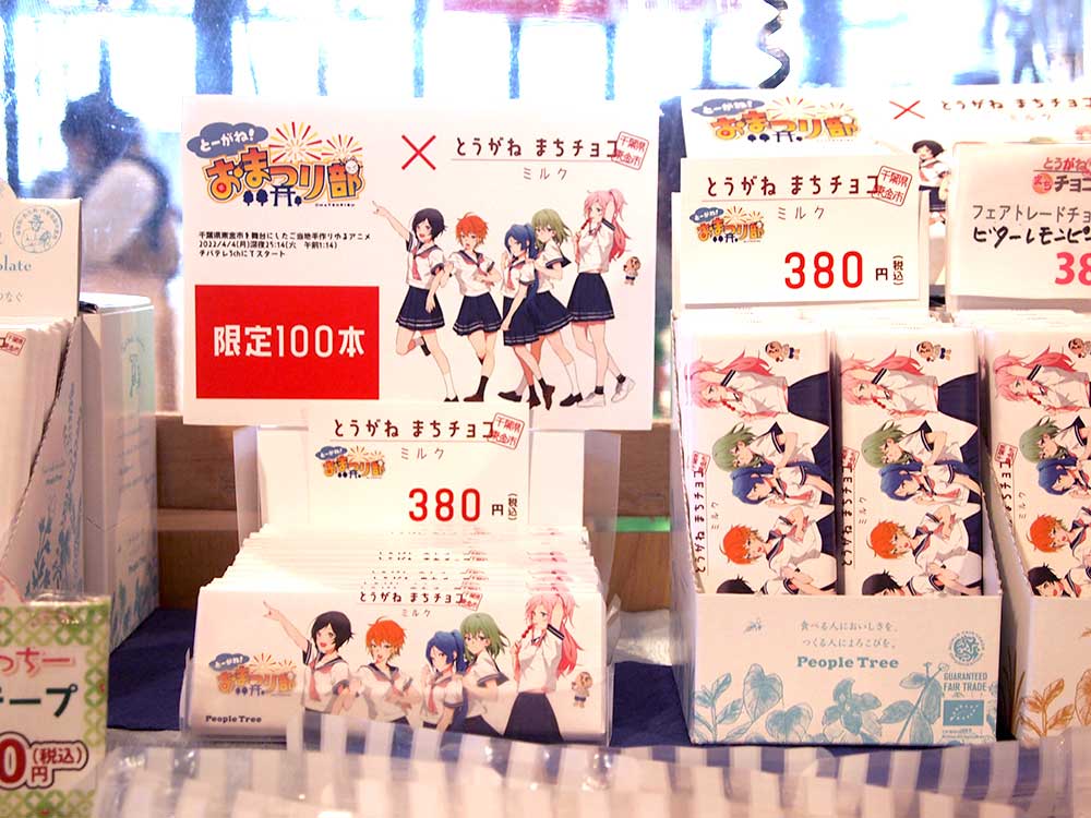レジ前コーナーでは、今話題!の「とーがね!おまつり部」パッケージの『とうがねまちチョコ』を絶賛販売中です!