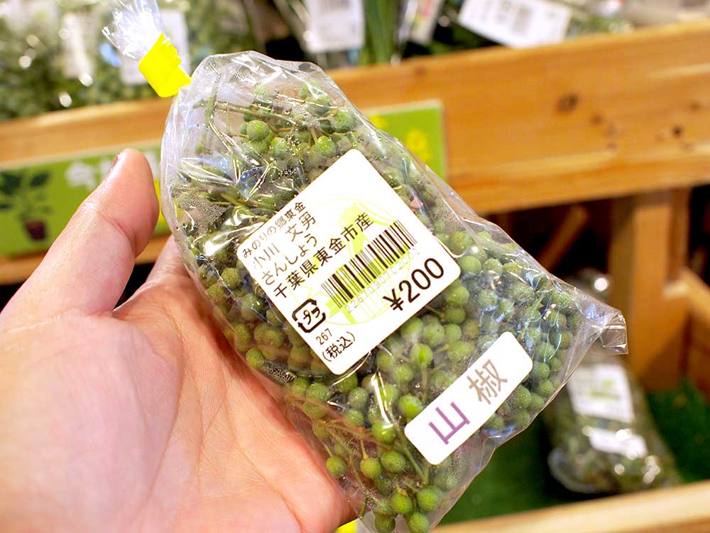 お問い合わせの多い東金産山椒粒も本日並んでいます。東金産のセリもあります。