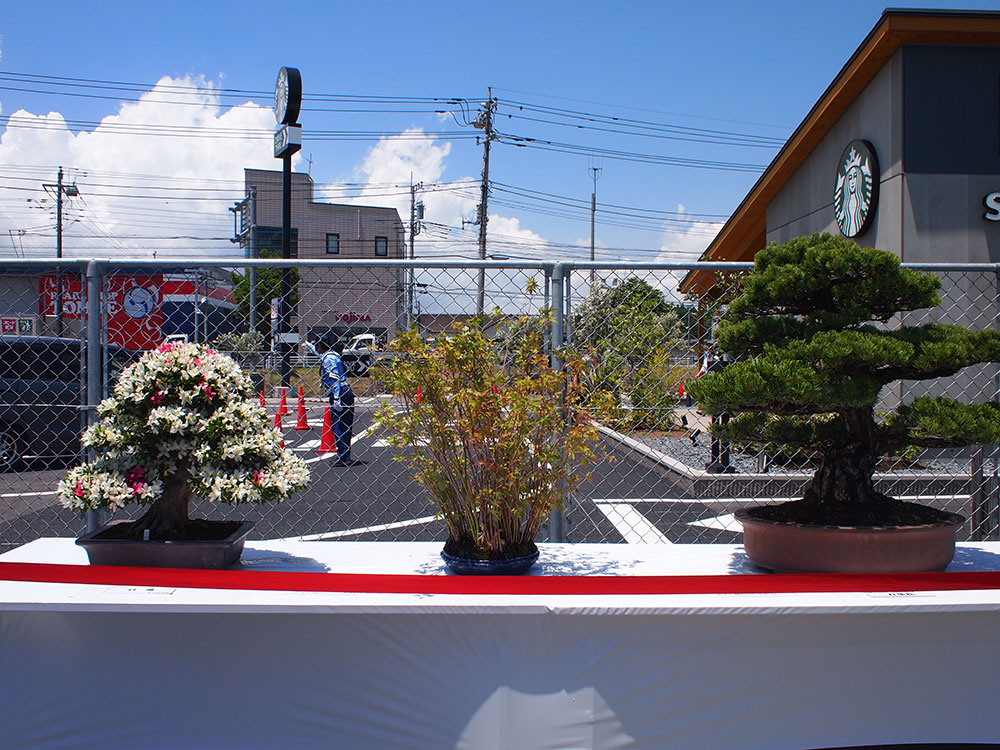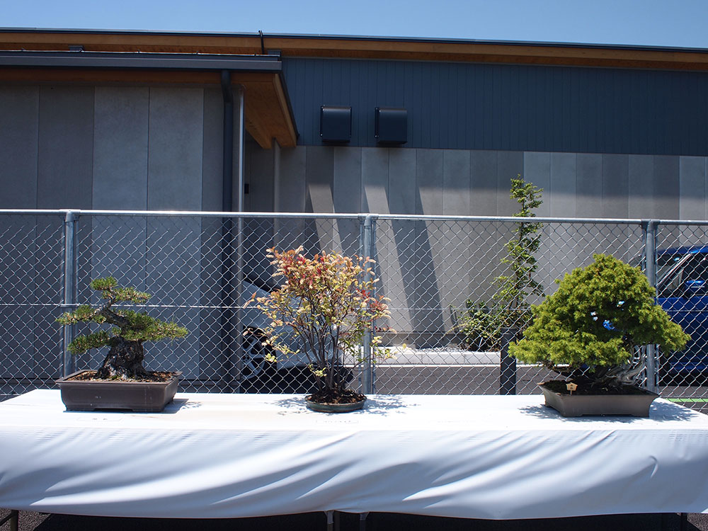 こちらで展示をしている盆栽は、オリンピック会場でも展示された作品のほか、盆栽展で栄誉ある賞を受賞した作品もありますので、どうぞご覧くださいませ。