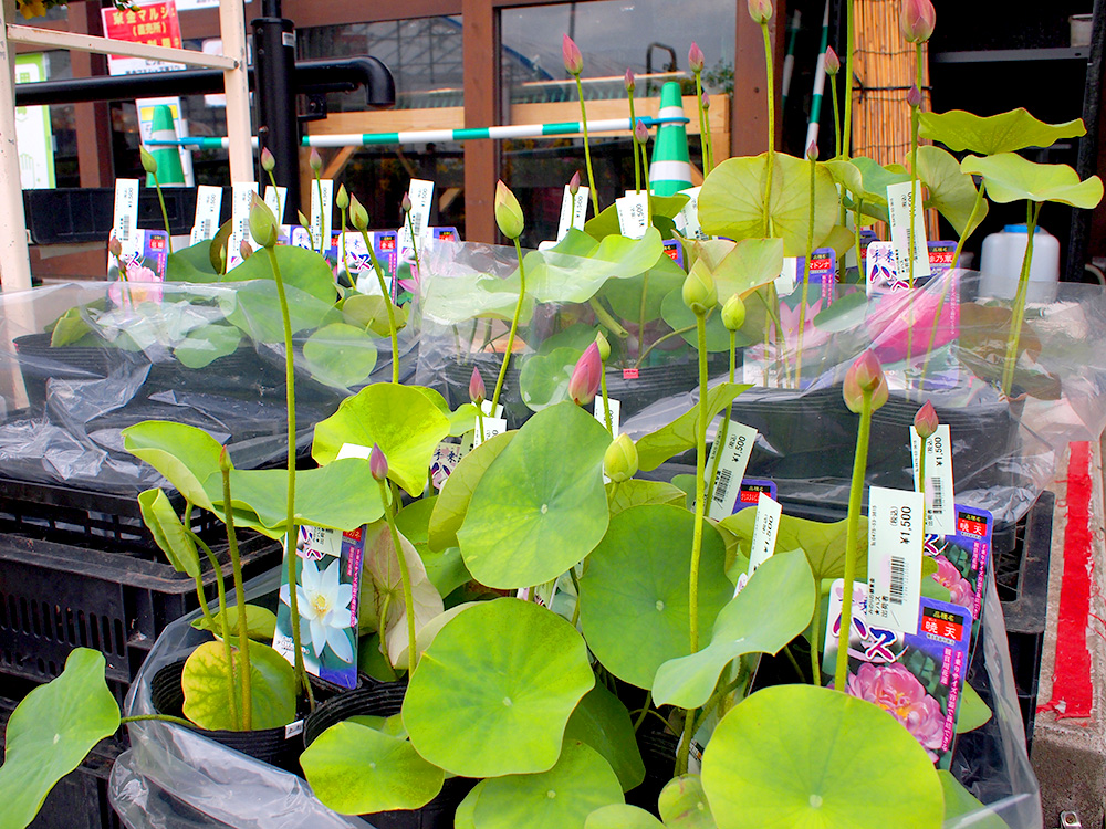 パイプハウスの入り口では、東金で生産されている『手乗りハス®』のつぼみが膨らみ始め、美しい開花を待っている感じです。