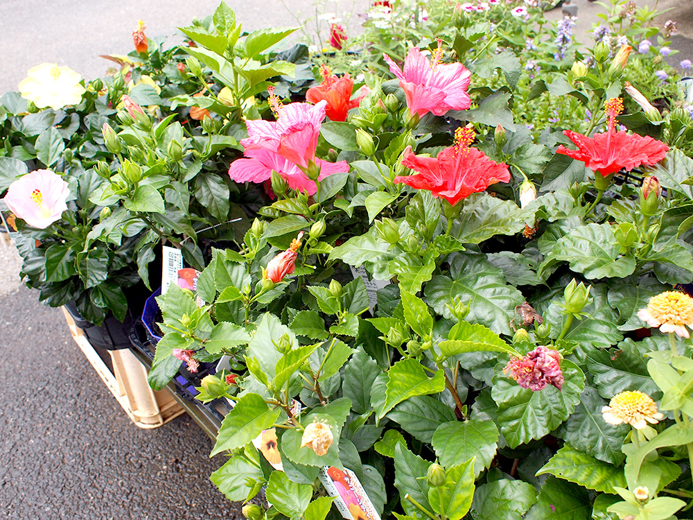 お手頃なグリーンや、色鮮やかなハイビスカスも並んでいます。