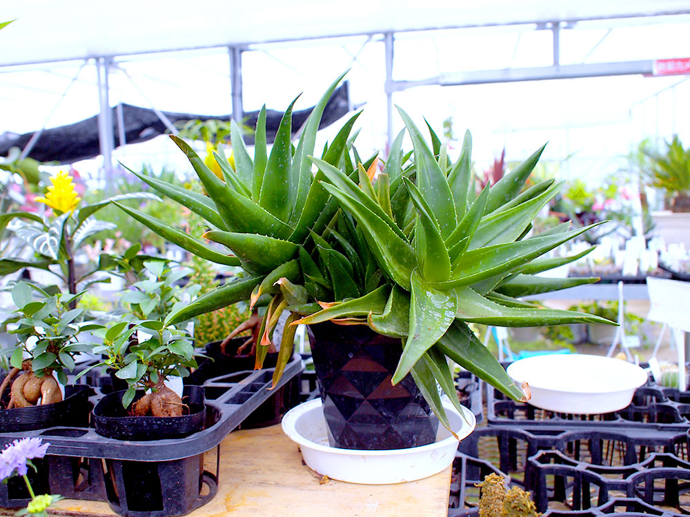 本日まで『多肉植物フェア』開催中ですが、パイプハウスの中でもこのように多肉植物や観葉植物が並んでおります。