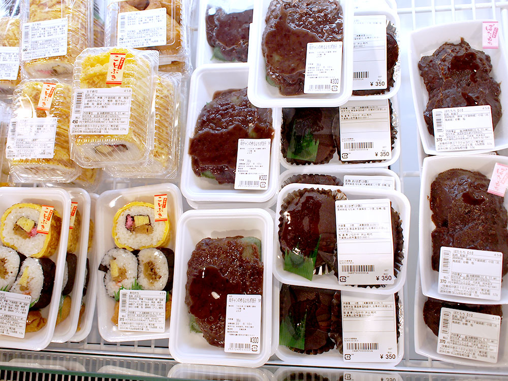 そのほかにも、農家のおかみさんが作る太巻き寿司や牡丹餅も今日はたくさん並んでいますね!